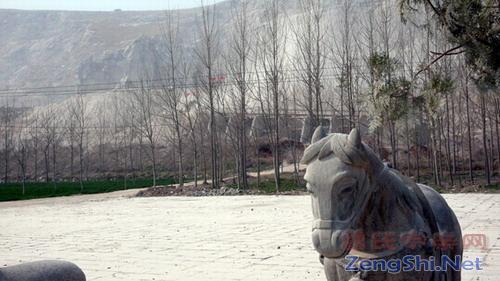 出了曾庙,我们要到曾子墓,可这时看门人对我们说,现在不行,要放炮,正在我们疑惑不解、面面相觑的当儿,身边传来了阵阵震耳的炮声,偱声西望,但见上空白雾弥漫,一片馄饨。当我们穿过迷雾般的粉尘来到曾子墓前时,大家几乎惊呆了:放炮的山坡与曾子墓近在咫尺!