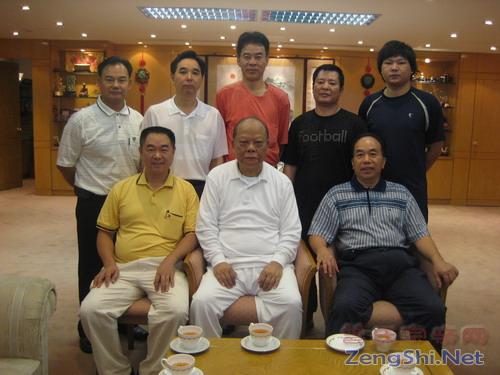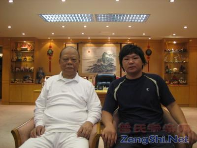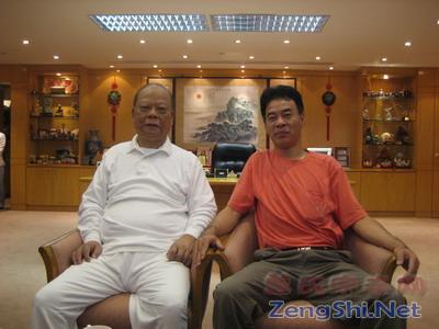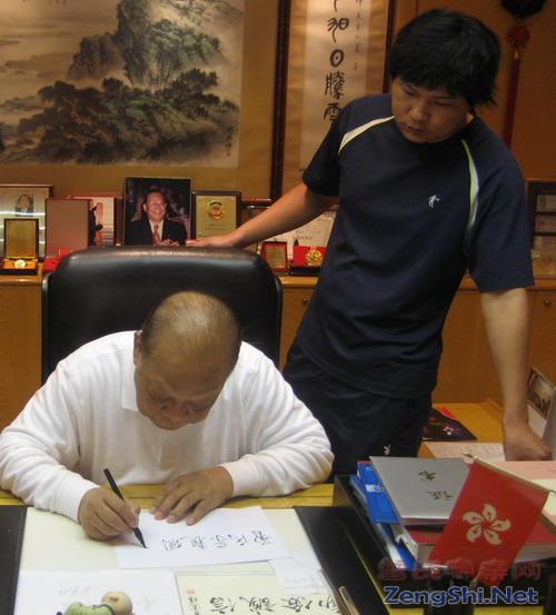 在交谈中,我们向宪梓宗亲分别汇报了昨天的盛会情况,以及近来曾氏宗亲联合总会、曾氏宗亲网的活动和方方面面曾氏族人的动态,宪梓宗亲非常耐心听取,在各个问题上不时讲述自己的看法。他还向我们讲述倡议成立“曾氏宗亲联合总会”的的经过和意义,就宗亲总会现状的提出评价和今后发展提出建议。曾氏宗亲网的成立得到老人家的赞许和鼓励,并应我们的要求,即场爽快地为宗亲网题字(见版头)。谈到修缮曾氏族谱,宪梓宗亲的兴致相当高,谈到重修族谱的意义和建议。随后宪梓宗亲主动和大家拍照,并介绍了办公室陈列的诸多照片、纪念品的来历。这些都是宪梓宗亲的人生写照,让我们感受到他对社会、对国家民族、对曾氏家族的贡献。他对我们在场的宗亲最多的是鼓励,勉励我们对家族、对社会要有“无私奉献”的精神,在家族事务方面要抱着“多做实事”、“要量力而为”、“要有服务精神”