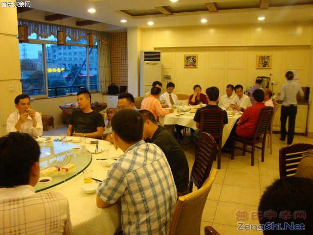 傍晚,大家到一家名为“聚豪”的小饭店晚宴,见面交流场面温馨、热闹。首先由广宾站长送赠每位到会的宗亲纪念品和总会简报,随后由化州健峰总版主派赠送每人一份《化州曾氏宗亲会会刊》。当天到会的有来自浙江、四川、广西、香港等籍在粤版主,广东有广州、花都、番禺、深圳、清远、陆丰、梅州、云浮、五华、潮阳、化州等地宗亲。聚会由广宾站长特别邀请曾氏宗亲网新聘任的两名顾问——花都永洽成公司董事长庆洪家先生和曾氏宗亲联合总会副会长友明家先生(详见宗亲网“联系我们”)光临指导。聚会期间大家就宗亲网今后的发展,纷纷发表了热情洋溢的讲话,并解囊捐助本次聚会经费(详见本网站“宗亲捐助”)。