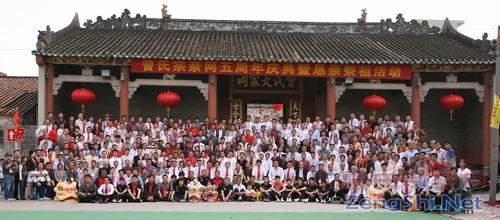 2010年4月19日,在祖国的南疆、改革开放的最前沿--深圳,举行了由“曾氏宗亲网”主办,“广府新桥曾氏仕贵公理事会”承办的大型庆祝活动--曾氏宗亲网诞辰五周年庆典暨恳亲祭祖大会。当天阳光明媚、天气晴朗,宗圣公庇佑(18、20均有雨)。出席嘉宾有来自河南、四川、江西、湖南、福建、广西等省各地宗亲组织代表,及广东省各市县宗亲、在深各省市宗亲以及香港、新加坡等地代表,共约400多位宗亲嘉宾出席。大会的气氛庄重而不失活泼,热烈而不失和谐。 下午2点,装饰一番的深圳新桥曾氏大宗祠早已宾客满盈,宗亲们或是游走于大宗祠各角落瞻仰,或是相聚一起畅谈家史,不亦乐乎。