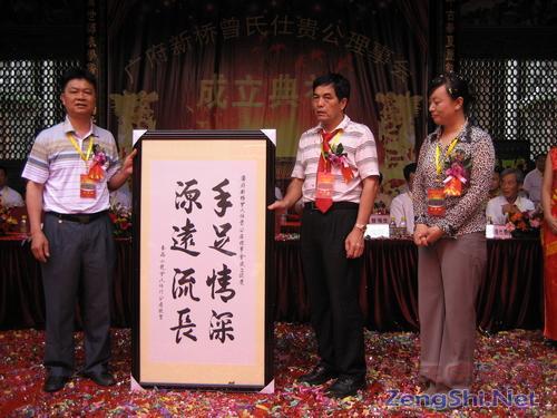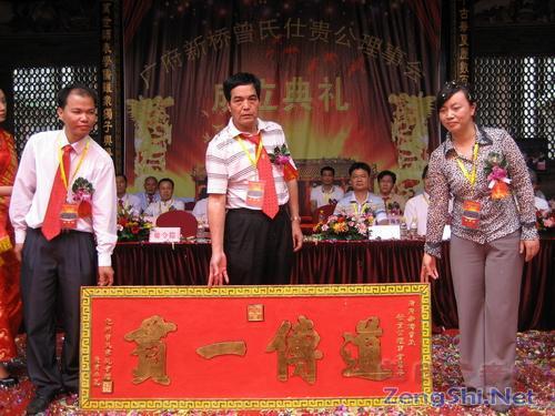 筹备了一年的新桥仕贵公理事会,今天早上在深圳市宝安区沙井镇新桥曾氏大宗祠宣布成立,来自各地的仕贵公后裔代表聚集一堂,各地受邀嘉宾、代表也到贺,共庆良辰。 早上九点半,主办单位首先安排与会成员平拍摄大合照,留下光辉的一页。随后,宗亲们就座大宗祠,由大会司仪、宗圣公七十四派孙女瑞体姑娘宣布成立大会正式开始。第一项是祭祖仪式,全体与会宗亲在当选会长、仕贵公二十八世孙日超家先生带领下祭祀历代先祖。整个祭祀过程在庄重、简约的气氛下进行。 祭祀完毕,宗亲们就座原位,司仪向全体与会宗亲表示欢迎,并简介仕贵公房系曾氏的历史渊源和现状。然后由日超家先生致辞。随后由新任仕贵公理事会会长日超家先生和代表曾氏宗亲联合总会的令霞宗亲共同主持揭牌仪式,并宣布广府新桥曾氏仕贵公理事会成立! 接下来是仕贵公理事会理事长国祥家先生作工作报告,将筹办理事会的经过介绍,以及宣读理事会今后的工作计划等。之后是仕贵公后裔化州平垌房昭权致辞;曾氏宗亲网代表昭演家先生致祝贺辞;曾氏宗亲联合总会副会长兼秘书长令霞致贺辞...。最后接受各地宗亲组织致送的贺仪,有牌匾、有锦旗、有字画等等。仕贵公理事会成立大会在热情洋溢的、和谐团结的气氛下结束。接下来是深圳特色的盘菜午宴。 仕贵公后裔成立的理事会,显示了仕贵公后人团结友爱,众志成城。成立了理事会,增强了家族的凝聚力。期待他们能够顺利完成重修族谱、互助奖学等目标。更好地弘扬宗圣公思想文化。 热烈祝贺广府新桥曾氏仕贵公理事会成立!