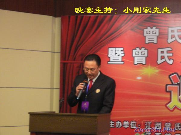 傍晚迎宾晚宴在华拓大酒店三楼隆重举行,宴会由省会常务副会长小刚宗亲主持、省会庆平会长致欢迎词,湖南新仁铝业集团小山董事长、台湾世界曾氏宗亲联合总会清诚秘书长分别发表即兴演讲。香港特首曾荫权、金利来集团董事局主席曾宪梓博士以及解放军某部曾占平将军分别发来贺函。欢迎晚宴在欢乐喜庆、祥和的氛围中进行。