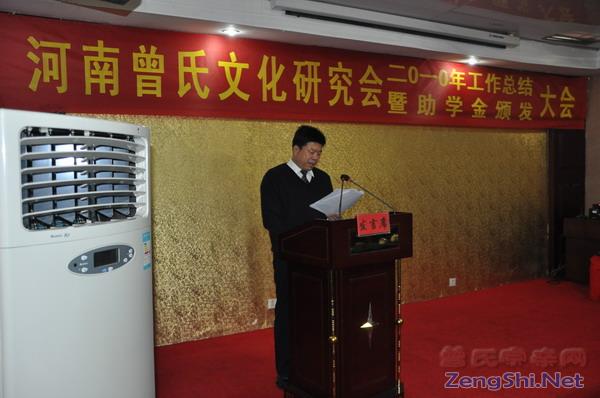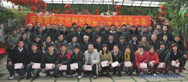 2011年1月29日,时值农历腊月廿六日,隆冬季节,却艳阳高照,在温暖的阳光照耀下,河南曾氏文化研究会2010年工作总结暨助学金颁奖大会在郑州市西北郊的四季同达生态园黄河厅隆重举行,室外阳光明媚,厅内气氛热烈,来自全省的近百名理事会成员及受助学子或学生家长济济一堂,隆重举行自己的年会。
