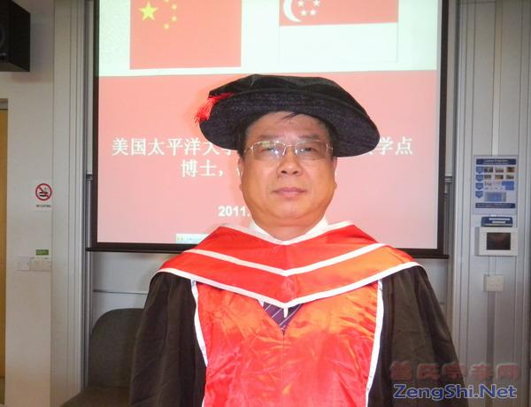2011年5月21日美国太平洋大学博士生毕业典礼在新加坡大学工商管理学院,美国太平洋大学新加坡分校隆重举行,河南曾研会会长曾占国顺利通过毕业论文答辩,荣幸的参加了毕业典礼,喜获博士学位。