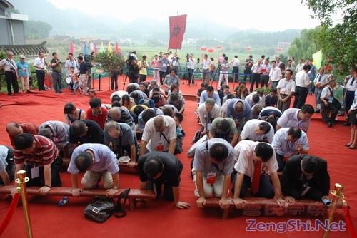 开幕式当天,第一项活动是由全体到会曾氏宗亲会举行了传统的祭祀仪式;主祭未文正公五世孙宪华和世界曾氏宗亲会秘书长清诚宗长,整个祭祀过程在司礼官唱礼声指挥下顺利举行,礼乐、鞭炮样样完备,行三跪九叩礼,最后众人列队一一向文正公像上香致礼。