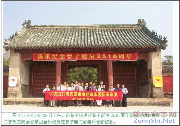 2011年9月24日至9月27日,广东江门曾氏宗亲会省亲团18位宗亲,远赴山东省嘉祥县曾子故里进行省亲和祭祀活动。