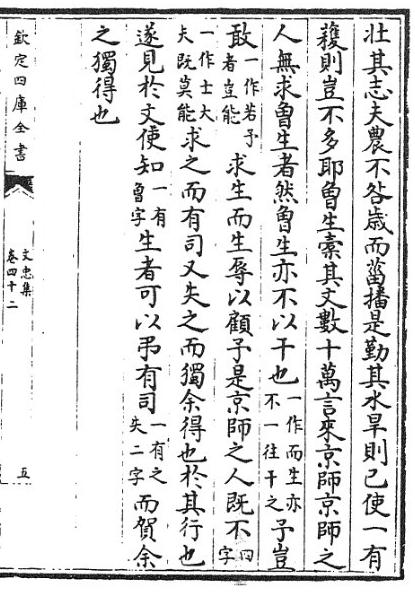 广文曾生(括号内为曾昭演按语。即曾巩、与欧阳修同被后世称“唐宋八大家”),来自南丰(今江西抚州市南丰县),入太学,与其诸生群进於有司(指考官)。有司敛群才,操尺度,概以一法(只有官方唯一的考选标准),考其不中者而弃之。虽有魁垒拔出之才,其一累黍(shǔ、古时建立度量衡的依据,以黍外形尺寸作基数)不中尺度,则弃不敢取。幸(被选取的幸运之人)而得良有司,不过反同(没有通过选拔的返回原型),众人叹嗟爱惜。若取舍非己,事者(当事人,指考生)诿(wěi、推托)曰:“有司有法,奈何不中!”。有司固不自任其责,而天下之人亦不以责有司,皆曰:“其不中,法也”。不幸有司度一失手(尺度、喜好没有统一标准,则选择有偏向,与现代作文评卷一样),则往往失多而得少(考生众而三年一选名额有限)。呜呼!有司所操果良法邪?何其久而不思革也(作者对选考制度不满,呼吁改革)。况若曾生之业,其大者固已魁垒(以曾巩的文章,应该名列前茅),其於小者亦可以中尺度(起码考取会试),而有司弃之,可怪也!然曾生不非同进(指没有非议同届选取者),不罪有司(没有怪罪考官),告予(我)以归,思广其学而坚其守。予初骇其文,又壮其志。夫农夫不咎岁而菑(zī、初垦之田)播是勤,甚水旱则已,使一有获,则岂不多邪?曾生橐(tuó、用袋子装着作品)其文数十万言来京师,京师之人无求曾生者,然曾生亦不以干也。予岂敢求生,而生辱以顾予。是京师之人既不求之,而有司又失之,而独予得也。於其行也,遂见於文,使知生者可以弔(慰问遭遇不幸的人)有司,而贺余之独得也。 |