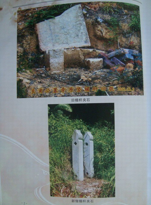 梅州坑口良甫公裔孙,孝德为上,不忘祖训,永远好样。因各种历史因素良甫公墓百年来未维修,墓门破损、墓地水土流失,无路可走,无法参拜(请见画册中相片)。2007年4月13日已退休老教师、长者年高古稀的曾宪新,带领本地宗亲曾宪奎、曾宪金、曾宪荣、曾庆荣亲临现场考证、拍相、召开会议、研究方案。会议上大家认为我们作为良甫公的裔孙,老祖公把我们留在家门口,我们有责任保护和维修祖坟,可是我们人丁百十口,生活上比较落后,经济能力不强,但我们有责任走出家门到外地宗亲那里去,告知他们,让他们捐资重修先祖墓地,使老祖公更好的保佑我们,使墓地生光、管事。会议上每人捐资500元,并派代表宪新、宪金直奔河源、惠州、深圳和广州,进行数月艰辛的集资活动,并完成了坟地重修的全过程。