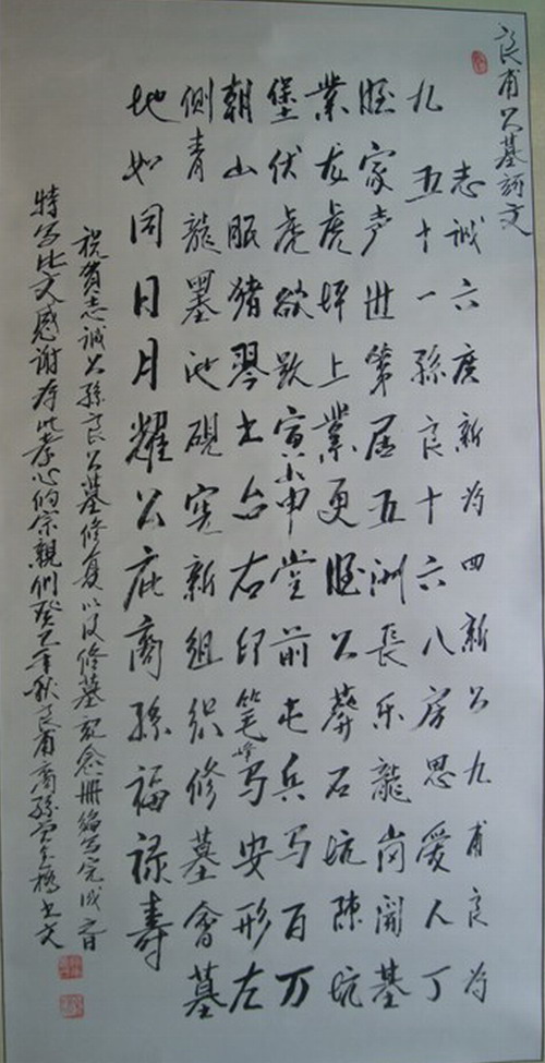 左侧青龙墨池硯,宪新诸贤修墓会。良公墓地添耀辉,公庇裔孙福禄壽。