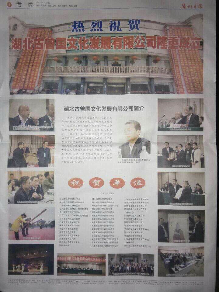 《随州日报》专版(见下图、日报原文)  《湖北古曾国文化发展有限公司简介》