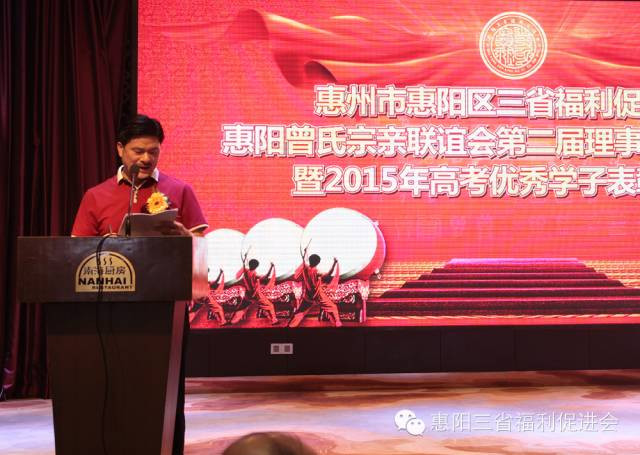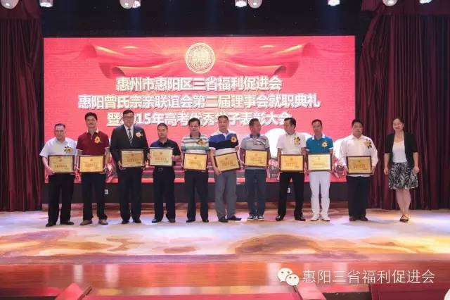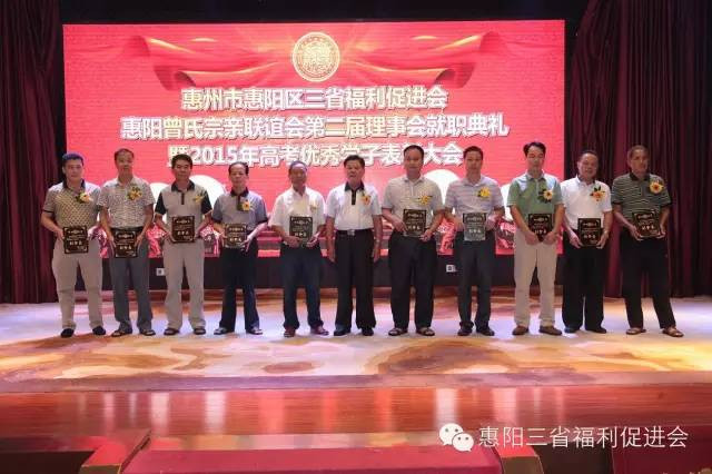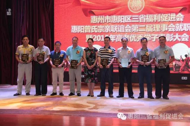 2015年8月22日上午,广东惠州市惠阳区三省福利促进会、惠阳曾氏宗亲联谊会在淡水丽景国际花园酒店隆重举行第二届理事会就职典礼暨2015年高考优秀学子表彰大会。