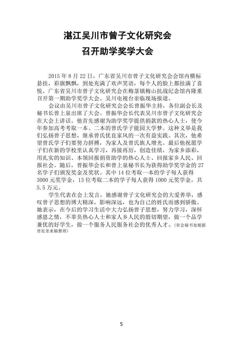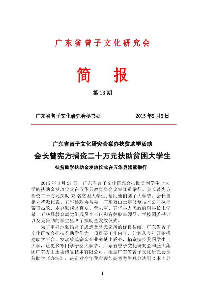 广东省曾子文化研究会十三期简报
