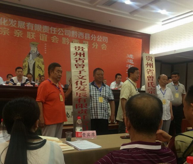 2016年7月9日,贵州曾子文化发展有限公司黔西分公司暨贵州省曾氏宗亲联谊会黔西分会成立大会在贵州毕节地区黔西永贵大酒店十六层国际会议厅隆重举行!来自贵州各县市400多人参加活动。 贵州省曾氏宗亲会会长富财家先生、常务副会长宪怀家先生、副会长兼种书长宪忠家先生、副会长监事长鸿彦家先生等贵州省会领导出席毕节地区黔西县曾氏宗亲分会成立大会。