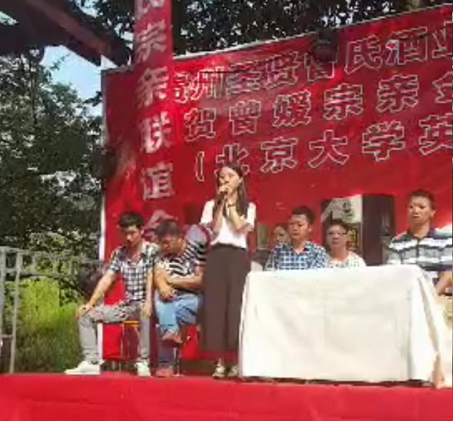 来参加庆功会的宗亲代表一一发言.给曾媛宗亲带来了奖学金.希望她再接再厉.不负众望. 曾媛宗亲父亲才是真正曾子文化的传承者.培养了三个大学生.在这样艰苦的环境.实属不易.值得我们学习的榜样. 最后:曾媛身负重托:贵州省曾氏宗亲联谊会执行会长曾宪怀宗长给曾媛作了重要指示!努力深造.学习曾子文化.传承曾子文化!完成学业回报父母.回报家乡.回报社会!做国家有用之材,大会在欢乐的鞭炮声中结束今天的庆功会.年年有今日.岁岁有今朝.曾氏学子们.加油.清华.北大的校门在向你们招手。