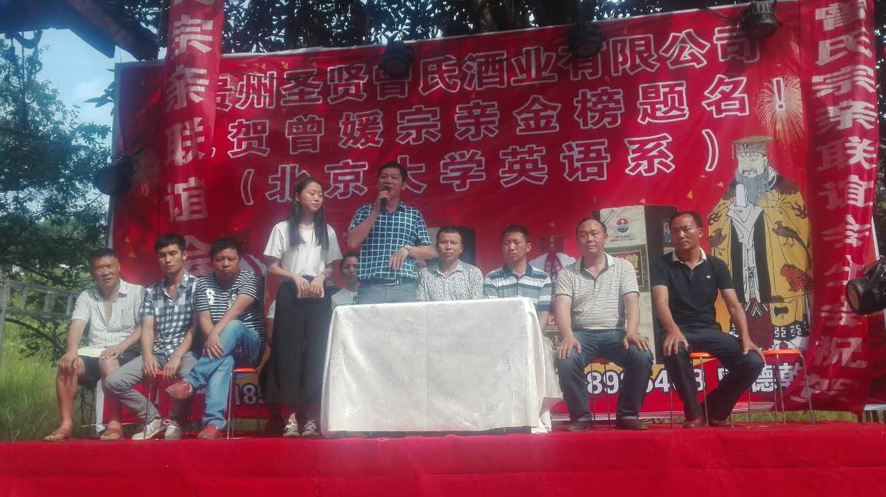 有目标的人生才是有意义的人生,一个人若没有目标,就如同迷失了方向的船只,随波逐流,永远没有温馨的港湾。 2016年8月10号.贵州省黔南州惠水县雅水镇公朋村谷脚组曾媛以683分的成绩北京大学外语系(文科状元)录取庆功会在这里举行。这里环境优美人杰地灵,是贵州一个偏远的小山村,人烟稀少、盛产水稻和玉米,简称贵州粮仓。曾媛、黔南州文科状元第一名,在这充满欢庆的时刻,贵州圣贤曾氏酒业有限公司赞助了这次餐用酒。参加人数700多人,有县政府领导以及来自不同的组织代表。