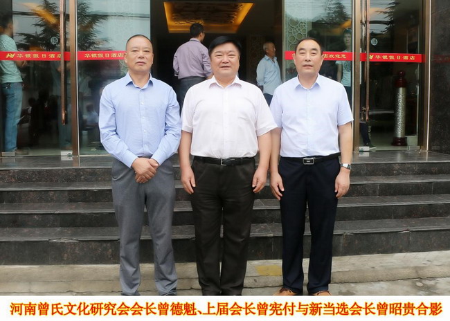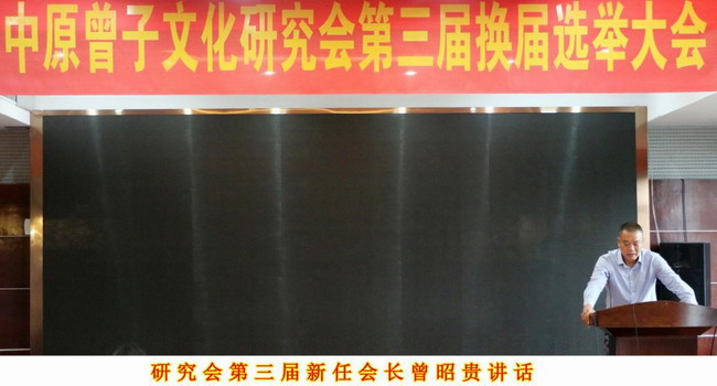 金秋九月,丹桂飘香,在这美好的日子,9月26日,中原曾子文化研究会在信阳市华银大酒店举行第三届换届选举大会。曾宪森副会长主持会议。 曾宪付会长对中原曾子文化研究会成立十多年来的工作做了全面总结。他说,2005年11月26日,“中原曾子文化研究会”举行成立大会,研究会的成立,标志着中原地区曾子后裔有了自己的联谊组织,这是几百年来中原地区第一个曾氏家族组织,也是全国第一个于2005年在民政部门合法注册的社团组织。研究会的工作一年一个台阶,呈现出平稳、健康、有序的发展态势,2012年在全市896家社团组织参评中,被信阳市民政局授予“三A社团组织”;2013年“中原曾子文化研究会”被信阳市委统战部、信阳市根亲文化研究会授予“先进集体”荣誉称号。十多年来,研究会在宗亲联谊、续修族谱、建设宗祠、帮扶助困、奖励优秀学子做了大量工作,中原地区的广大曾氏宗亲在研究会的带领下精诚团结、互帮互助,为弘扬儒家文化传承曾子精神,为构建和谐中原做出了积极贡献。 曾宪洋副监事长做了研究会财务审计报告。 会议审议通过了《中原曾子文化研究会换届选举办法》,选举产生了第三届会长、副会长、理事长、监事长和秘书长。曾昭贵当选为会长 。 新当选的会长曾昭贵做了表态发言。他说,今天,我有幸成为第三任会长,我要感谢各位宗亲的大力支持,中原曾子文化研究会的工作离不开你们的参与、支持和鼓励。在感到光荣的同时,我更感到一种压力,一种责任。对我来说,今天是一个新起点,我觉得自己就像是一个学生,面临的考题就是如何更好的做好中原曾子文化研究会的工作这篇大文章。为此,我要尽职尽责做到:一、加强自身修养,做一个学习,传承曾子文化的带头人。按照修身、齐家、治国、平天下的要求,对自己严格要求,按照曾氏族规,家规要求,不断修正思想,规范行为。要引导我们的曾氏宗亲都来学习曾子文化等儒家经典,通过学习来潜移默化我们的思想,激励我们做一个正直,善良,有修养的人,做一个对社会、对家庭有用的人。二、要积极开展研究会的工作。要调动每一个宗亲的积极性,发挥每一个宗亲的作用,充分尊重大家的意见建议,实行三长办公会议确定研究会的工作方向,真正做到民主管理,集体决策,集思广益,坦诚相待,也恳求各位宗亲为研究会多贡献自己的智慧和力量。我深信,有付出就会有收获,只要我们努力工作,就一定会有成效。我更坚信,有省、市领导的支持帮助,有班子所有成员的精诚团结,有在座的以及全市曾氏宗亲的共同努力,中原曾子文化研究会一定会越办越好。 八县两区各分会代表都作了表态性发言,全力支持新一届研究会的工作。 河南曾氏文化研究会会长曾德魁,曾氏宗亲联合总会监事长曾广春,分别在大会上讲话,他们从不同方面充分肯定了前两届中原曾子文化研究会取得的成绩,并对研究会今后的工作提出了很好的意见建议。曾广春监事长现场捐给新一届研究会伍万元人民币。会后全体参会人员在酒店前合影留念。 下午,参会的部分县区宗亲代表参观了新装修的“中原曾子文化研究会”办公室。