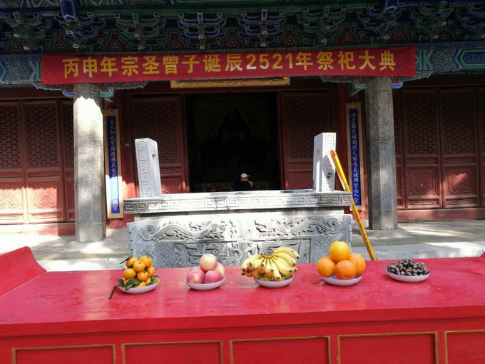 平邑曾子山祭祖结束后,宗亲们前往嘉祥县宗圣庙向宗圣公敬献花篮、上香、鞠躬祭拜宗圣公,一切如仪。