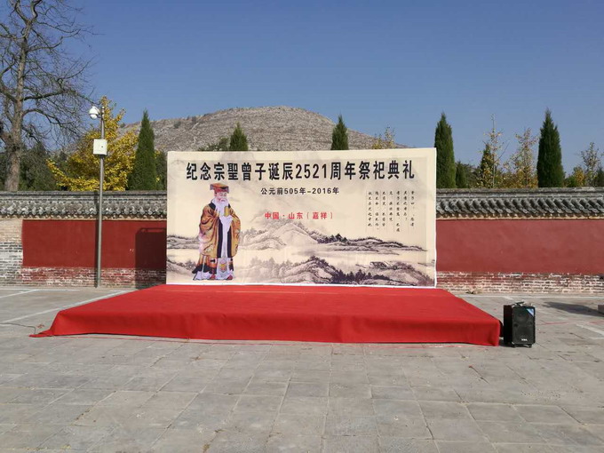 2016年11月11日,阳光灿烂,晴空万里。来自湖南、河南、香港、海南、湖北、四川、广西、江西、贵州、福建、广东、江苏、浙江、陕西、重庆、山东等省宗亲,百忙之中,怀着一颗颗虔诚朝圣的心,汇聚曾子故里、山东省平邑县南武城遗址,出席宗圣曾子诞辰2520周年祭典。 中国曾子文化委员会主任曾小山主祭,首席顾问、原济南军区副参谋长曾庆祝将军,副主任兼监事长、原湖北省军区副政委曾求腾将军,副主任、海南省曾氏联谊讲学基金会会长曾凡益,副主任、河南省曾氏文化研究会会长曾徳魁,副主任、香港九龙曾子文化研究会会长曾昱,副主任、湖南武城国学院执行会长兼秘书长曾仲勋领祭。 大多数宗亲都是第一次亲眼看到神秘的曾子山。当视线越过北方冬季少有的斑斓的植被往上,一座巍峨的卧佛清晰地勾勒出了蓝天的轮廓。所有的宗亲都抑制不住的“哇哦”,互相惊喜地用表情或语言传达:这才是出圣人的地方!历史典籍的记载和眼前一切高度吻合,印证了这块钟灵毓秀d的高天厚土、就是武城曾氏开派祖参公生息、安寝的神圣故里。 此时此刻,一股神圣的感情不由自主地升腾起来,充溢了胸膛。所有人都朝曾子山奔去,恨不得投入圣山的怀抱!各种自拍、各种合影,留连不舍,久久不愿离开。 这是曾子故里平邑第一次举行全国祭典,由中国曾子文化委员会与平邑县曾子文化研究会联合主办。临沂市副市长兼平邑县委书记侯晓宾亲切会见和慰问了宗亲代表,临沂市政府党组成员兼平邑县长王君师发表了热情洋溢的欢迎辞。平邑县政协主席、曾子文化旅游项目指挥部总指挥徐守军全程陪同。