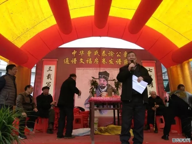 2017年3月31日(农历三月初四日),中华曾氏《泰谕公裔通谱》文福房卷(九修)告竣暨祭祖迎谱典礼在维山乡芦家桥村赤壁院隆重举行。至此,泰谕公孙辈15个文字房的谱牒编撰全面告竣,全谱共292卷,印刷20942册,曾氏入谱人数(在世)153858人。 文福房400多位族人参加了庆典。10个红色的气拱门,30余个氢气球,彩龙1条,大小乐队和管弦乐队4支,更增添了赤壁的祥和与喜庆。新化县曾子文化研究会的多位领导亲临指导,新老会长和秘书长分别做了重要讲话,对文福房的谱修进行了充分的肯定。同时他们还邀请了文道房、文逵房的族亲代表与会。 会议由九修委员会主任草明主持,整个过程分为祭祖和发谱两大部分。上午10点,族亲们按祖制对泰谕祖妣、延寿祖妣、文福祖妣及列祖列宗进行了祭奠。 之后,仁华,富萼等就修谱事宜进行了高度概括,对年青人的满腔热情进行了点赞。 中午时分,对族人发放了新修的谱牒。 下午1点左右,五十余桌的族亲在亲切祥和的气氛中频频举杯,一场盛大的典礼圆满结束了。