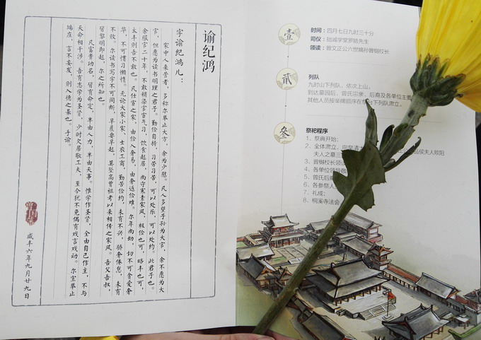 此次公祭活动区别以往鸣炮燃烛的传统仪式,而是请曾文正公六世孙曾樾先生现场带领众人诵读《曾文正公家书》中经典名篇“做读书明理之君子”一则:“凡人多望子孙为大官,余不愿为大官,但愿为读书明理之君子。勤俭自持,习劳习苦,可以处乐,可以处约,此君子也。……无论大家小家,士农工商,勤苦俭约,未有不兴,骄奢倦怠,未有不败。”