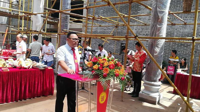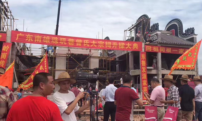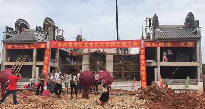 2017年7月22日下午,来自广东省内各县市的宗亲代表,以及部分省外热心族人纷纷来到广东南雄珠玑大酒店集合,为准备参加次日举行珠玑巷在建曾氏大宗祠升樑典礼,报到期间各地宗亲现场踊跃为大宗祠建设捐资,当天就超过一百三十余万元。 曾氏大宗祠建设自2016年6月25日公开招标评标,由湖北大冶景苑园林仿古建筑工程有限公司中标,随后签署承建合同。自开工至今进展顺利,今择吉日升樑。上梁是建房最主要的一环,按照民间传统举办隆重的升樑仪式,有着一定的程序和意义,期盼中梁支撑永保建筑物坚实,平安吉祥,香火旺盛,泽被苍生.... 22日傍晚,由南雄武城曾氏联谊会主办欢迎晚宴,欢迎各地宗亲的到来,并联谊活动。晚宴上,首先由南雄武城曾氏联谊会常务副会长晓洪家先生致欢迎辞;随后分别由南雄副市长兼公安局长东野家先生致辞、广东省曾子文化研究会百友家先生致辞、深圳代表国祥家先生发言、广州花都昭棉家先生发言、广东省曾子文化研究会监事长曾胜家先生发言、广州番禺广基家先生发言。大家分别对南雄武城曾氏联谊会一年来为建设曾氏大宗祠付出的努力和贡献表示赞赏和鼓励,对各地曾氏族人积极捐资表示感谢,期待南雄珠玑巷曾氏大宗祠早日竣工。为团结曾氏族人、承传良好的曾氏家风,弘扬宗圣公以孝为先的思想作出贡献,建曾氏大宗祠乃遵循宗圣公慎终追远之教,尊宗敬族、和睦族亲则为要义。 23日(岁次丁酉年闰六月初一)早上,各地曾氏代表们乘车进入著名的珠玑古巷,在曾氏大宗祠建设现场参加隆重的上梁仪式。首先在大宗祠门外合影留念。10点仪式正式开始:南雄武城曾氏联谊会会长昭佑家先生致辞、南雄武城曾氏联谊会副会长子南家先生介绍大宗祠建设情况以及财务情况、广东省曾子文化研究会代表致辞、深圳仕贵公理事会常务副会长伟光家先生致辞。十一时(午时),升樑大典开始,按照传统的礼仪祭祀仪式,主祭为曾胜、百友、昭佑、国祥、晓洪诸位宗彦,最后在昭佑家先生唱诵《祝文》声中,大樑徐徐升起,并安装到指定的位置。升樑典礼在鞭炮和礼乐声中完满结束。