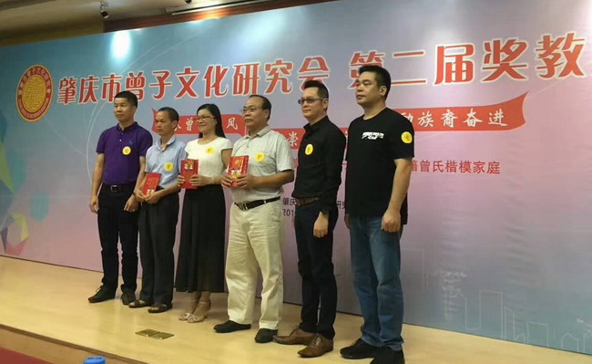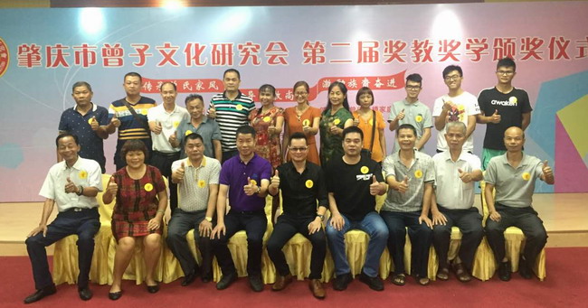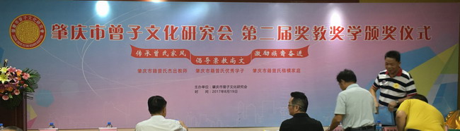 2017年8月19日上午,由肇庆曾子文化研究会主办“第二届奖教奖学颁奖仪式”在肇庆市端州区康乐北路国际广场肇庆市端州区南粤企业家商会会议厅(国际大酒店)举行。来自肇庆市各县区宗亲组织会负责人带领受奖学子和家长、以及优秀教师、优秀家庭共一百六十余人出席活动。特邀肇庆社科联副主席周春晖先生、广东省曾子研究会代表百友家先生、宪奎家先生、曾锐家先生,以及曾氏宗亲网总编昭演家先生参加活动。