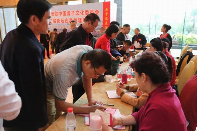 酒店大厅“中国曾子文化委员会2017温州论坛”的巨幅会标及巨大的签名榜、留芳榜格外引人注目。主办和承办单位的接待人员,满面春风地接待着来自全国四面八方的代表。
