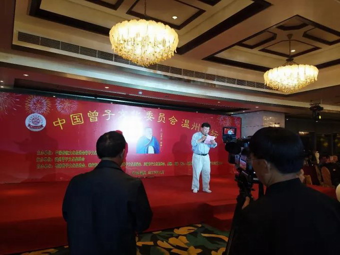 温州市曾子文化促进会曾宪焜会长饱含热情地致了欢迎辞,举行了《曾子文化之歌》的首发仪式。这是一首由中国曾子文化委员会曾小山主任一手策划,由曾子读书社的核心团队共同完成的作品,气势磅礴,振奋人心。