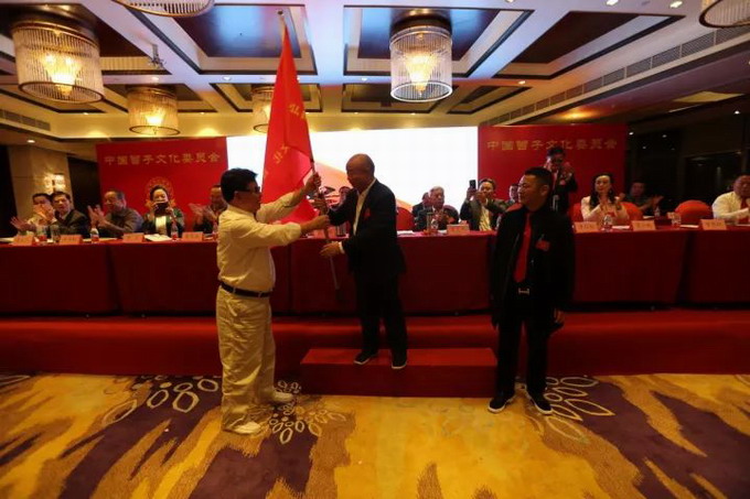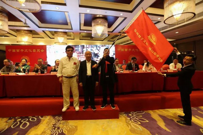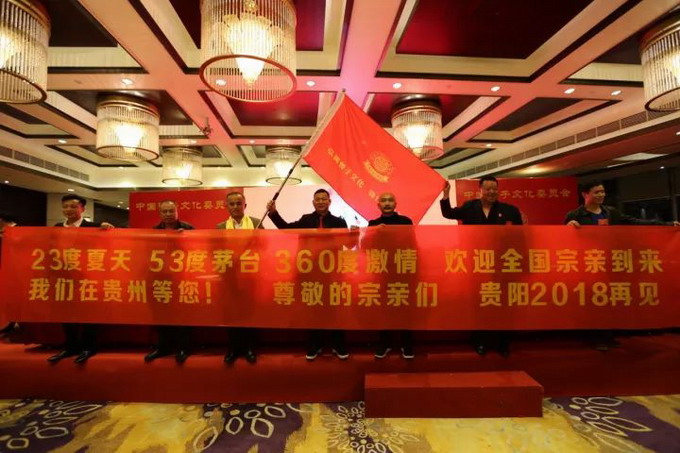 17点50分,中国曾子文化委员会曾德魁副主任宣布2018年曾子文化论坛的举办城市并授旗。当德魁副主任庄严宣布2018年曾子文化论坛在贵州省的贵阳市举办时,会场响起来雷鸣般的掌声。这时,曾宪焜会长将会旗郑重的交到了中国曾子文化委员会曾小山主任手中,并由小山主任授给了贵州省曾子文化促进会执行会长曾宪怀手中。宪怀会长接过会旗,高高举起不停挥舞。此时,他们的心情激动至极,因为竞选了三年,愿望终于得以实现。