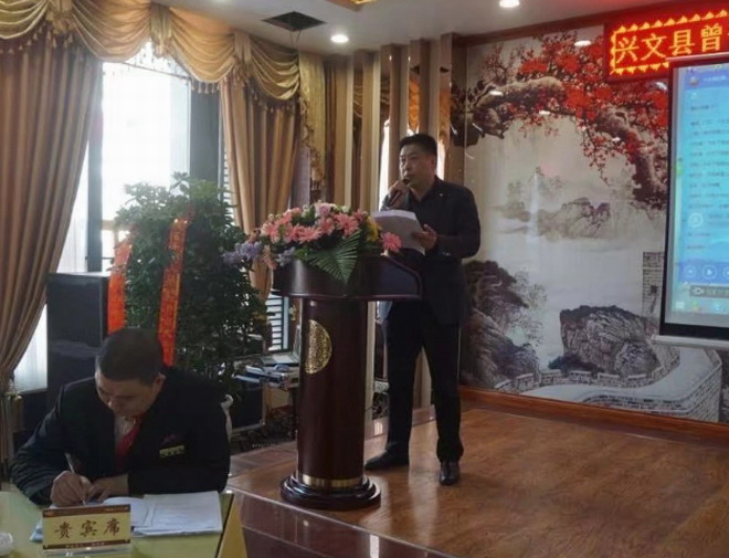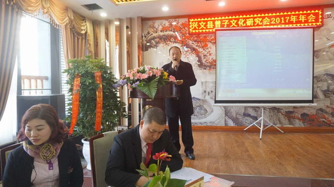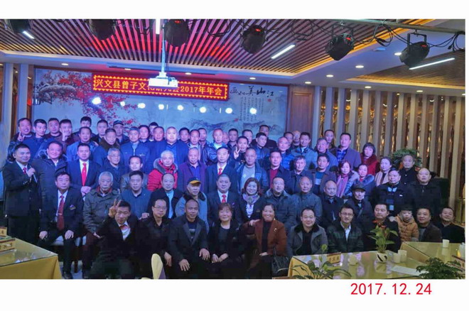 二0一七年十二月二十四日,天气大雾后艳阳天,冬日暖阳,宗亲们互相问候,心情格外暖和,喜笑融融;一年一度的2017兴文曾子文化研究会年会在县城光明坝苗城印象一号楼二楼“宜宾曾氏百年鸿人酒楼”宴会大厅召开;兴文曾子文化研究会理事会全体负责人,兴文各乡镇各支系负责人,四川曾子文化研究会副会长曾劲松,宜宾曾子文化研究会会长曾上权,常务副会长曾义楹,曾发辉,以及宜宾县曾长杰,曾从明,曾宗清,江安县曾品富,曾传平,高县曾立云,曾隆义,曾隆翠,曾定强,长宁县曾隆荣,筠连县曾元才,赵国琼,曾元康,屏山县曾安州,曾世洪等区县会长副会长共九十余人参加了会议。会议由研究会秘书长曾开明主持。 首先,由曾子文化研究会会长曾祥宏,总结一年来的工作;其次,曾彦公布了一年来的收入与开支账目,三,曾武春代表族谱主编小组介绍修谱前期工作开展情况,四副会长曾凡刚介绍理财组开展情况,五,各支系代表提建议和意见。 研究会顾问曾祥志,曾庆红,曾登明分别就“寻根源,清脉络,传家风,承文化,促发展”等内涵作了精彩发言;希望酒楼强化管理,规范化运营,热情服务,在敬业,品味,档次,影响和管理方面作了指导,同时,希望加强职业互动,传承提升文化品位,共同感觉是兴文研究会后劲强大,有潜力,一支以家族为荣,家族以宗亲为荣的队伍正健康发展。他们还要求研究会多为政府分忧,协助精准扶贫为抓手,促进社会进步;希望研究会树立高认识,高规格,级别高,要求高,不怕累,不惜代价精神,期盼研究会在曾子文化内涵,治家立志,成材治学,为国为家争光方面拓展努力。进一步共谋发展求同存异奋发工作;与之,还希望帮助弱势病残群体,鼓励优秀学子,抓好族谱研修。 副会长理事曾小义布置安排下一年工作;一尽力抓好春节迎春团拜,联谊“两会”,二交流吸收,培养有奉献精神的宗亲团结开展工作,三努力开展扶贫慰问,四抓好项目理财,寻求多项目发展合作,五提升交流工作效能,六做好来访接待等事务。 四川曾子文化研究会副会长曾劲松介绍了省会基金运营情况;珙县曾发辉在会上作了讲话。 宜宾曾子文化研究会会长曾上权在会上讲话;一,简短传达了省会班子换届,通过了《章程》,选出了以曾朝林为班子的二届组织班子,宜宾曾劲松选为省会副会长;二,宜宾一年来工作主要亮点,;兴文成功举办4,4清明祭祖2500人大会,开了宜宾曾氏祭祖先河;宜宾县9,9重阳,学子奖厉行四届成效显,兴文与叙永联谱颁发,高场宗祠修缮等,提什了宜宾内外声誉,要求各区县不断总结,提升经验;三,对下一步宜宾研究会主要工作建议如下,1,以区县,支系,本家为主体,抓好修谱;2,传承,研究,学习宗圣文化精髓,弘扬宗圣优秀思想;3,助优秀学子奖励,鼓励学习成才;4,祭奠祖先,9,9敬老,常态化慰问高龄老人,5,调解族内纠纷,依法维权,帮困抚难,6,以区县,乡镇为载体的联谊活动(办讲座,文娱,诗书画,生日,红白喜事),7,加强对全国省市区县宗亲及组织的交流学习,联谊,取经,8,发展宗亲实体经济组织,提供活动开展经济的支撑;9,扩大与外姓的交流,学习,借鉴外姓优秀经验作法,取长补短。 今天,我们全体宗亲‘宜宾曾氏百年鸿人酒楼’开年会,十分幸运,“有朋自远方来,不亦乐乎”。 希望百年鸿人酒楼开业后,期待各位八方来宾、各界朋友予以更多的支持,关心,重视和理解。同时,希望酒楼强化管理,规范运作,热忱服务,尽心尽力把酒楼建成宜宾乃至川渝有品味,有档次,有影响,效益管理一流的酒楼企业。同时,酒楼上下要大力提倡尊老,敬老,爱老,助老,提升员工对对家庭,对社会,对国家的责任感! 愿鸿人酒楼在“孝道文化”思想和行为方面起到普及推广示范,强化敬老孝道新风尚,使优秀传统文化在酒楼蔚然成风,争创宜宾有影响的孝文化教育基地做出努力。 汇中华美食,交天下朋友!同时,百年鸿人酒楼全体员工不辜负宜宾曾氏对你们的热切期望,为提升酒店业的整体水平,为宾客提供健康,舒适,绿色的全新消费新概念,努力打造出崭新的 “百年鸿人”的特色品牌。 上权指出,二O一八新年将至,他希望通过这个吉庆日平台,向各区县曾氏宗亲送上新年祝福,祝福大家平安吉祥,健康快乐!祝福‘’百年鸿人酒楼‘’财源广进,事业发达,鹏程万里! 会议开始前百年鸿人酒楼员工表演了《向前冲》和《我相信》两个集体舞,为年会助兴,受到会议代表赞扬。 大会感谢各位宗亲对兴文曾子文化研究会成立一年来的大力支持,感谢宜宾,叙永及各区县宗亲对兴文工作的大力指导,支持和帮助! 大会坚信,新一年研究会一定不辱使命,不负重托,坚持不懈努力,以酒楼为载体不断创新学习,实践优秀文化,致力引领承载中国优秀文化去创造更加辉煌的美好明天。