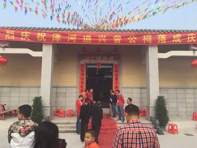 2018年元旦,广东佛山市高明区更楼镇泽河村“道兴曾公祠”落成庆典暨系列活动在本村举办。来自本市各地村庄以及市外、省外的宗亲纷纷组团到泽河村参加盛典活动,当天筵开八百多席,整个活动流程热闹而有序,欢乐又祥和。