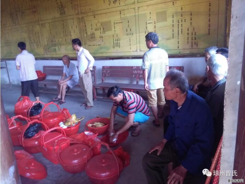 上图:令群宗亲正在布置祭祖供品