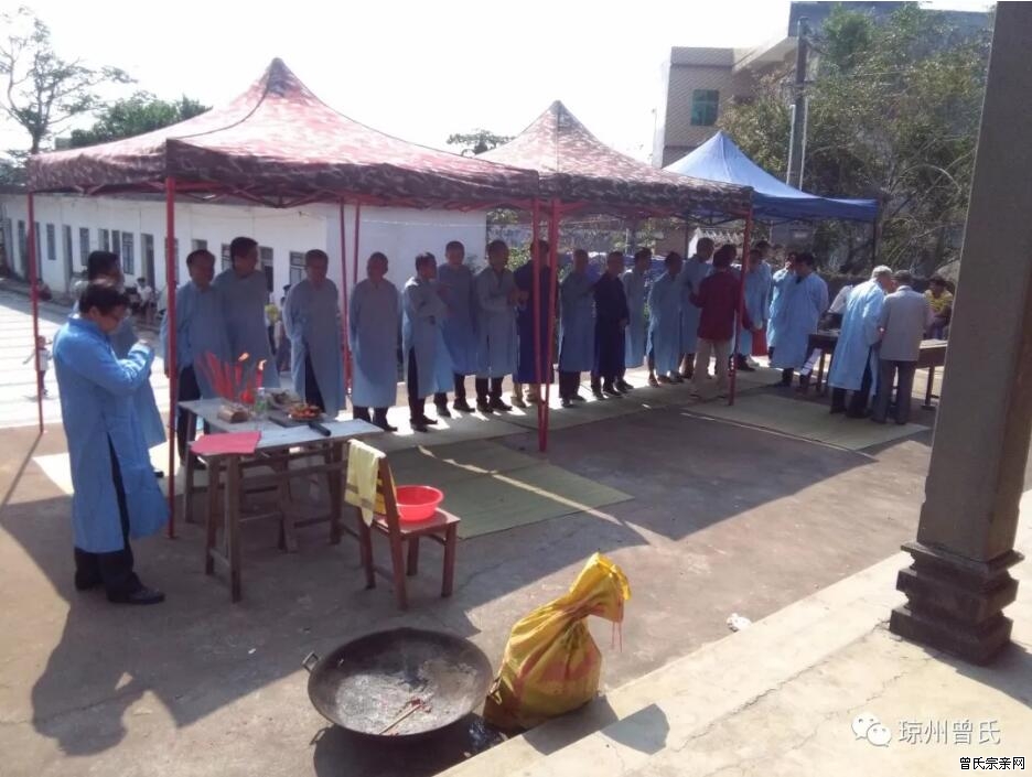 上午十点,沿古穿袍祭祖仪式,开始祭祖举三献礼仪式。祭祖活动由曾令昌宗长主持、曾令蕃宗长念读祭文、各房系代表参加。