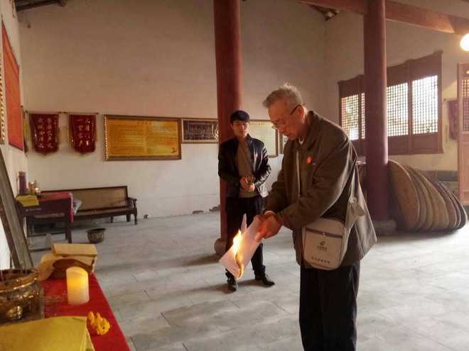 3、各乡镇理事向宗圣公曾子像、来川徒居开江的二十支派系祖先灵位、开江楷模像分别祭祖烧纸敬香三鞠躬;