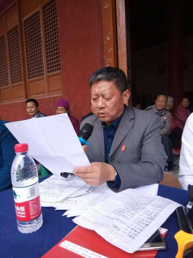 理事长令超家人公开向参会的所有族亲通报开江县曾氏宗亲会2017年的财务报告收支情况。