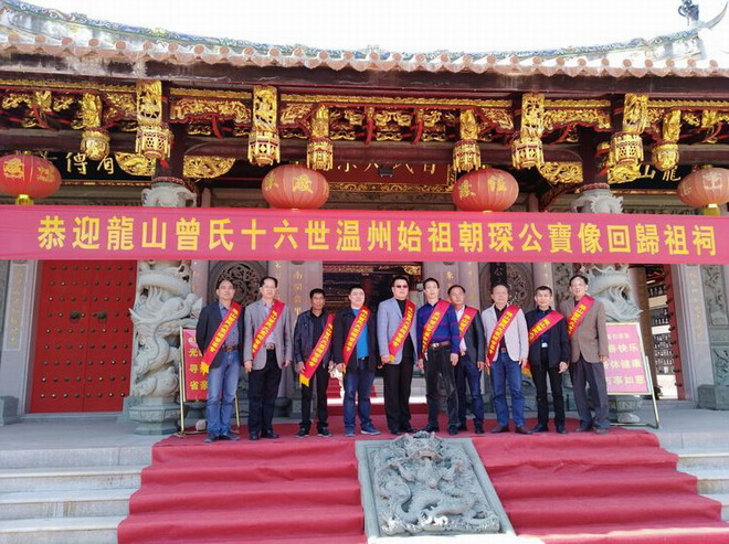 2018年4月8日,瑞安坎峰曾氏朝琛公宗祠在曾達義宗長及曾達杲宗長帶領下,一行六人護送朝琛公神像回歸泉州龍山大宗祠