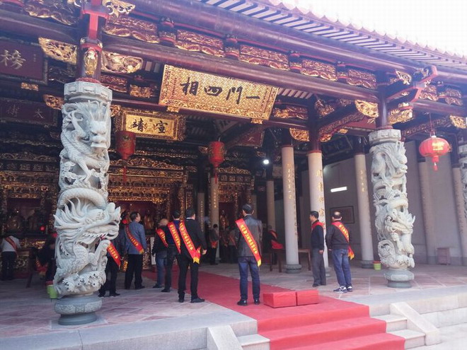 披紅掛彩,迎接朝琛公寶像進入祖祠,並舉行了傳統的儀式恭請琛公寶像回歸祖祠