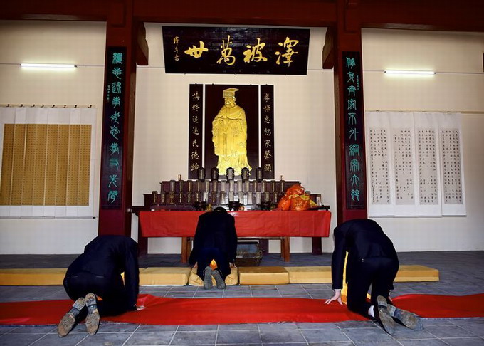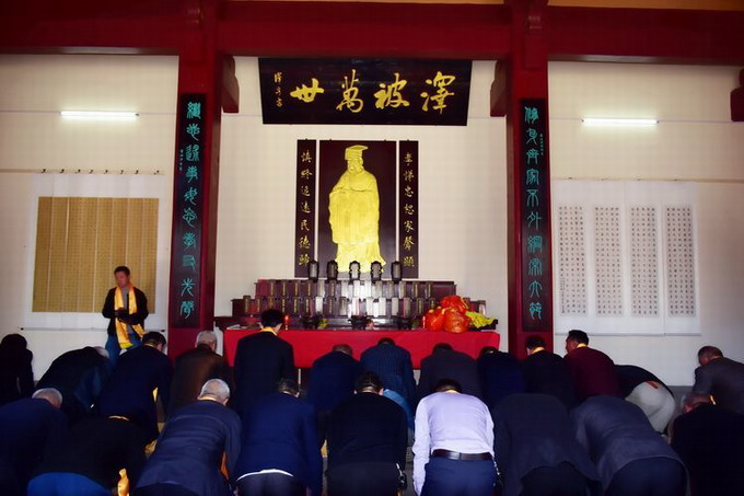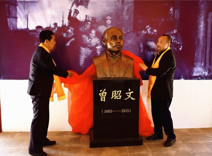 中国曾子文化委员会执行副主任曾凡益、河南省曾氏文化研究会名誉会长曾宪亮为曾昭文塑像揭彩。