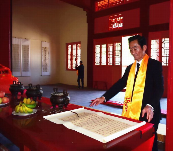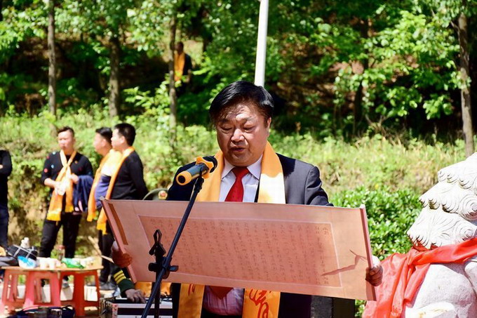 河南省曾氏文化研究会会长曾德奎恭宣祭拜文,为抒敬祖之情,壮家族之声,主祭人率新县曾氏族谨致祭于曾氏宗祠前曰: