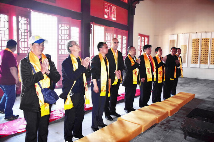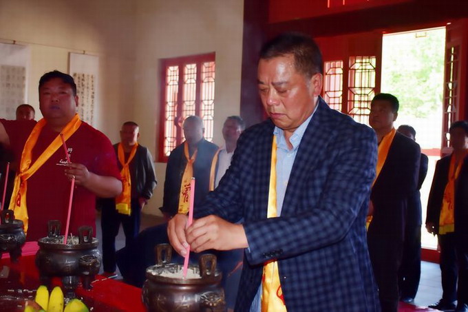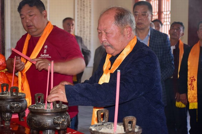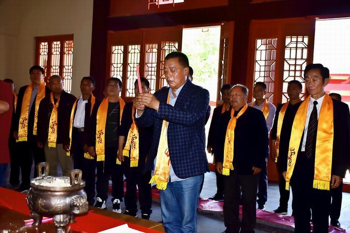 中原曾子文化研究会会长曾昭贵新县分会副会长曾昭平率新县宗亲代表向曾氏祖先敬香、叩拜。