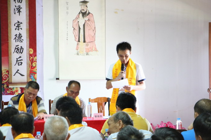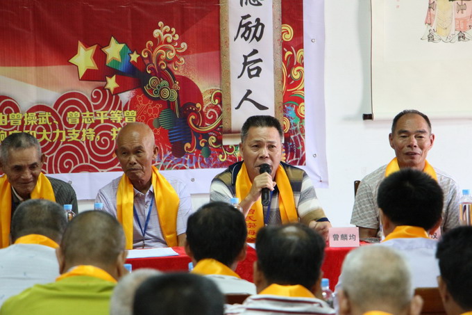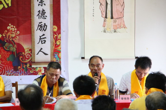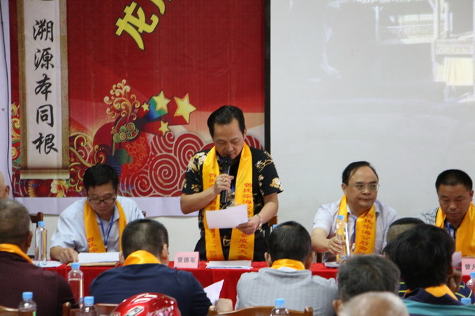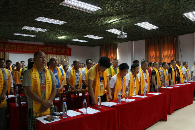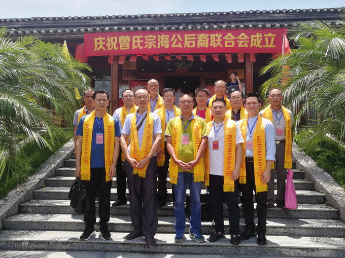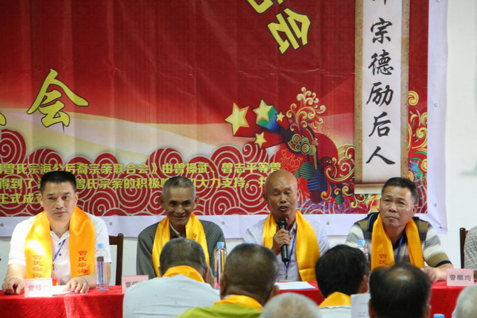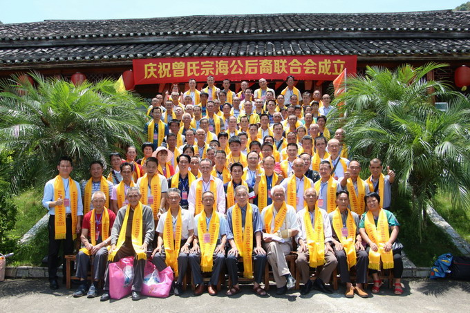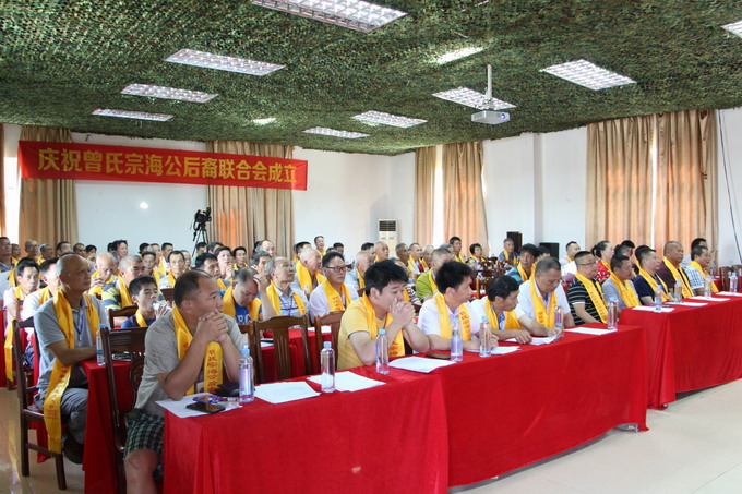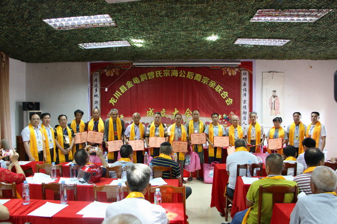 宗海公,曾氏五十八派字能职,为广新公第5世孙(广新公-章甫公-文化公-敬宗公—宗海公),于元末明初年间从龙川县登云北山围移居通衢镇金龟洞石榴花开基立业。依次经禄科、万、福、玉、世、秀、增、大、秉、先、绍、志、仕等统一排行字辈,目前已繁衍20多代,总人口过万人。宗海公后代从石榴花发展到当地的龙阁楼、曾岗(江)围、旺田围(上曾)、石角里等多处地方外,有的外迁到广东海丰(万新公房系);有的迁到江西赣州、庐陵、吉安、吉水、永桂(主要为万顺和万铭公房系);四川成都高新东区和新都区、资中铁佛和银山、威远连界(主要为万新公房系);有的迁到云南、贵州、广西等地;宗海公后裔现除衍居以上地方外,还有香港及海外等地。 不忘本来,方能开辟未来。《龙川县金龟洞曾氏宗海公后裔宗亲联合会》是由曾操武、曾志平、曾业超、曾少举,曾庆福、曾德军、曾水军、曾汉粦、曾德汉、曾麟军等宗亲提议成立,并得到了海内外宗海公后裔的大力支持。为了筹备好这次大会,曾氏宗海公后裔上至七八十岁的老者,下至二十几岁的后生,都积极踊跃的参与到筹备组的各项工作,特别是在资金落实、通讯联络、会务组织、后勤保障等方面大家同心同德,不遗余力,展现出曾氏家族空前的凝聚力和向心力。 成立大会由曾国强宗亲主持,在庄严、慷慨激昂的国歌下拉开帷幕,伴随着悠扬感人的曾子之歌,全体曾氏宗海公后裔向曾子画像虔诚三鞠躬,缅怀先祖英德,铭记祖训家风。会议全票通过了《龙川县金龟洞曾氏宗海公后裔宗亲联合会》章程,选举出第一届总会长曾操武,金龟洞会长曾德军、四川会长曾琴、江西会长曾庆福,石角里会长曾大方;聘任荣誉总会长曾志平、曾业超,荣誉副总会长曾德禄、曾伟宁,总顾问曾锡粦、曾友平;理事长曾麟均、监事长曾德汉、秘书长曾伟华,以及副总会长、副会长、副理事长、副监事长、副秘书长、全体理事和监事等组织机构人员。