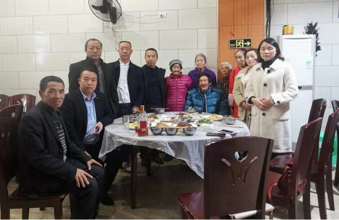 在曾繁益姐姐家里,护送的宗亲们与当地镇、村领导祝贺他们姐弟团聚