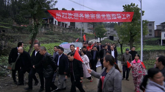 图为两位副主任在桐梓视察时受到当地宗亲们热烈欢迎