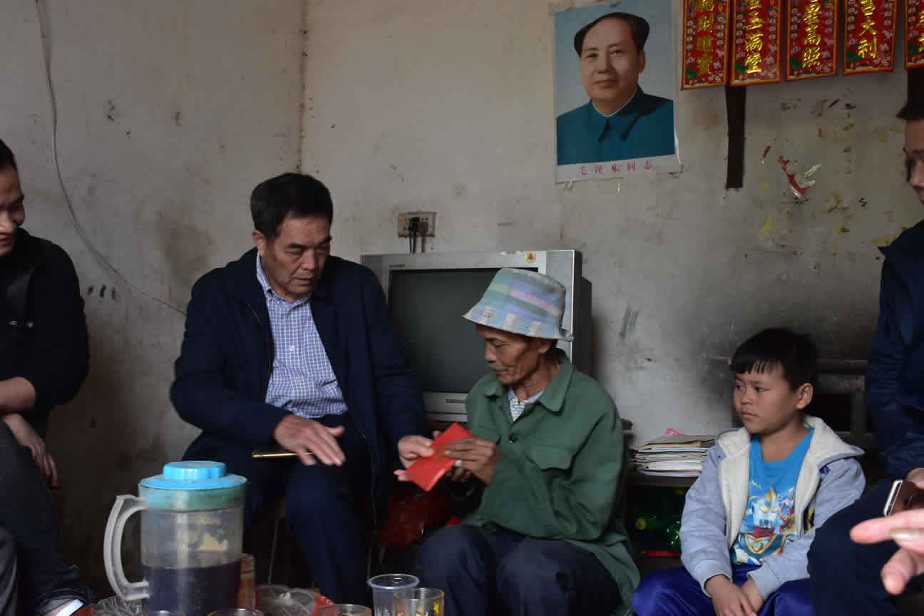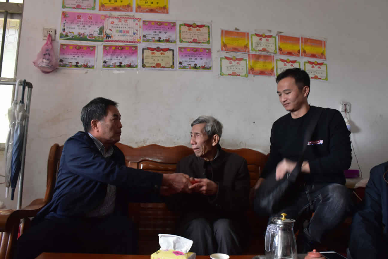 次日上午,本团专程去到塘心山村,拜访了捍卫平垌房民国族谱作出贡献的曾海青老先生,对其生活困难发放3万元嘉奖金。随即前往南盛镇长埇村,在本村干部曾兴珍等带领下慰问前不久失去劳动力家庭的曾庆彬(16岁)、曾庆彪(13岁)、曾庆添(11岁)三兄弟一家,发放3000元资助金。在丽岗镇午饭后,在平山村干部曾超志带领下,慰问了97岁高龄的孤寡老人曾冠真遗孀,发放3000元资助金。下午2时,驱车前往吴川市梅录街道梅山中兴村,慰问本村孤病残曾亚江,发放3000元资助金。并受到吴川市曾子文化研究会长曾振华、曾国伟等热情接待。