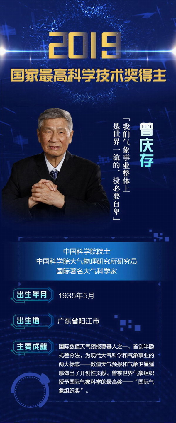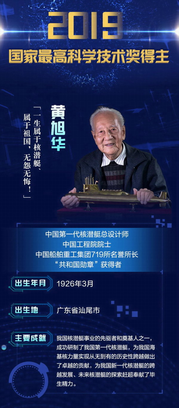 1月10日上午,2019年度国家科学技术奖励大会隆重召开。中国第一代核潜艇总设计师黄旭华院士、中国科学院大气物理研究所研究员曾庆存院士,获2019年度国家最高科学技术奖。