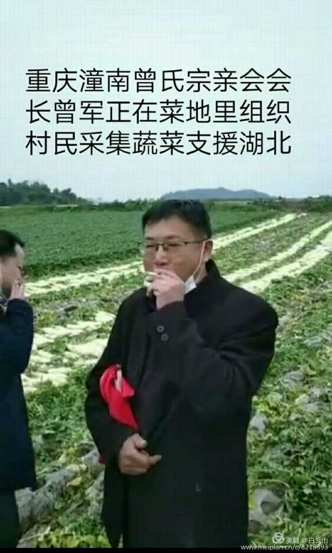 ——重庆市八区、县曾子文化研究会向新冠肺炎重灾区湖北洪湖赠送新鲜蔬菜 鼠年伊始,一场始料不及新冠肺炎疫情肆虐武汉并迅速蔓延至全国各地,给国家和人民生命财产造成了巨大损失。面对疫情,全国人民在以习近平为核心的党中央的英明领导下,万众一心,众志成城。在全国人民援助大武汉,展开了对新冠肺炎疫情的总体战,阻击战,保卫战,取得阶段性的成就。向世人展示我们伟大祖国的政治优势,制度优势,思想优势。 为期一个多月的“围城攻坚战”,致使疫情得到一定程度的控制,但也给部分地方人民群众的生活带来了一些不便。 2月23日,两辆满载着新鲜蔬菜的大货车,从重庆市潼南区出发,向千里之外的湖北省洪湖市进发。这是重庆市曾子文化研究会急重灾区宗亲生活之所急,想重灾区宗亲生活之所想,在重要关头启动了为湖北洪湖地区宗亲无偿提供六十三吨,价值十多万多元新鲜蔬菜的义举。你们的大爱之举不仅解决了当地宗亲们生活物资短缺的问题,同时也给这里送来了天下一曾无二曾的血缘亲情,增添了这里宗亲抗击疫情,战胜困难的信心和勇气。对此,两万多洪湖曾氏宗亲及五十多万湖北曾氏族人看在眼里,暖在心中,他们对此十分感激,决心把此次捐赠活动化作强大的精神动力,在各级党委、政府的统筹安排部署下,积极配合,节守自好,为最终打赢抗击新冠肺炎疫情的总体战做贡献! 重庆方面此次参与捐赠活动的曾子文化研究单位有:重庆市中心城区、永川区、合川区潼南区、綦江区、垫江区、大足区、梁平区。