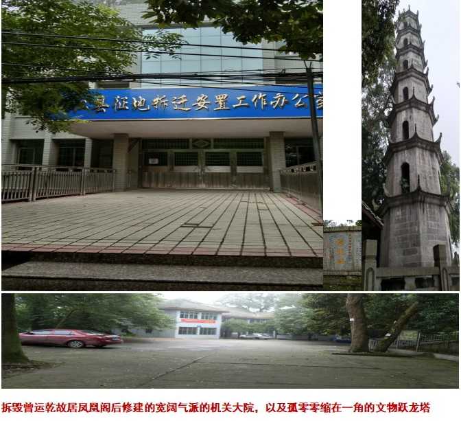 拆毁曾运乾故居凤凰阁后修建的宽阔气派的机关大院,以及孤零零缩在一角的文物跃龙塔