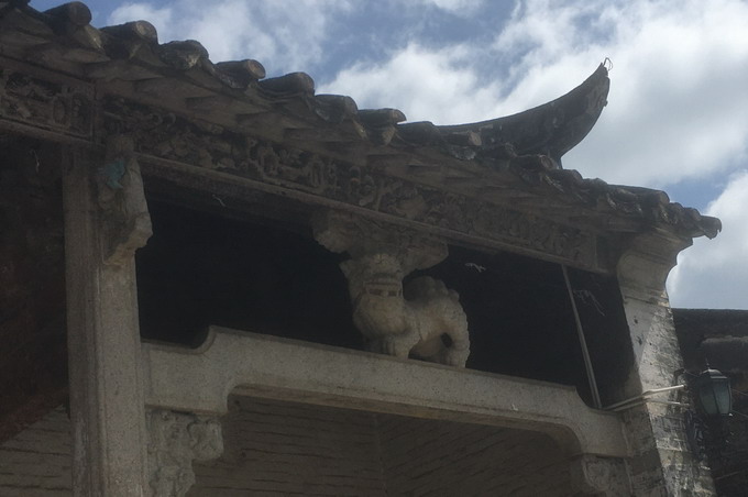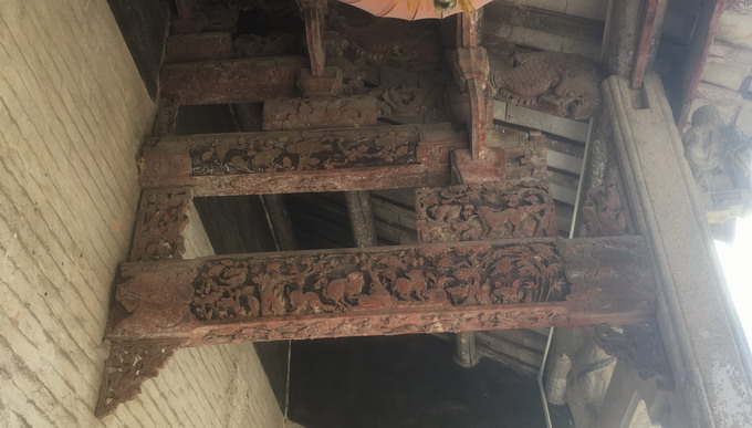 该祠比“曾氏宗祠”晚建约三十余年,此时可能经济上比较充裕,其结构、用材、装饰均比“曾氏宗祠”要讲究得多。祠堂主体建筑分门楼、中堂、后堂,主体建筑之间为天井及两侧廊闭合,天井排水设施完善,尽管四檐滴水,从未有水浸现象。天井两侧廊有小门形成内部巷道。