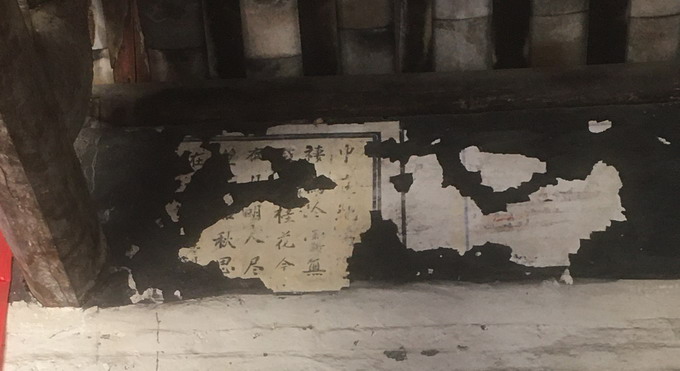上图:鲁封曾公祠壁画,黑色部分为文革期间刻意覆盖,有待修复