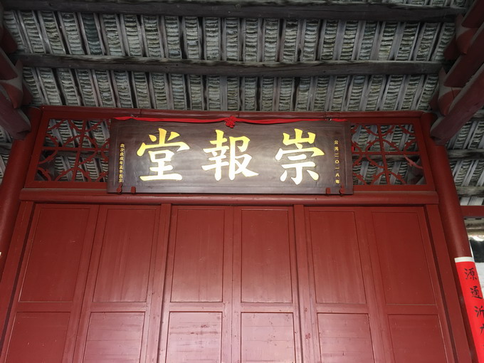 堂号“崇报堂”,典出成语“崇德报功”,其意是尊崇有德行的人,回报有功劳的人,让族人常怀敬德感恩之心。出自儒家经典四书五经中五经之一《尚书·武成》:“惇信明义,崇德报功,垂拱而天下治。”这个堂号很多姓氏祠堂使用,亦寓意让族人尊祖敬宗,懂得感恩。